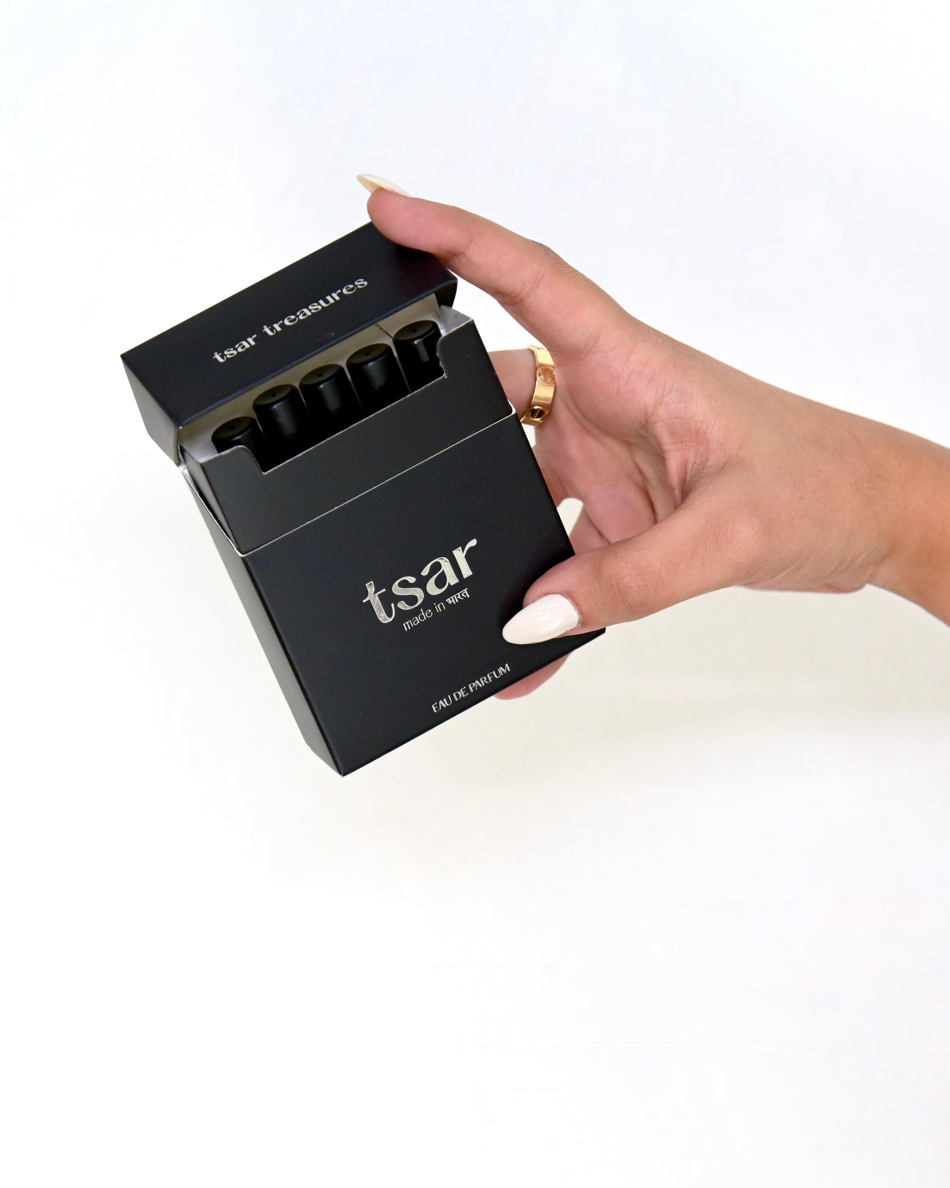 Like opening a vault of stories — five fragrances, each a journey through warmth, depth, richness, freshness, and awakening of the senses.